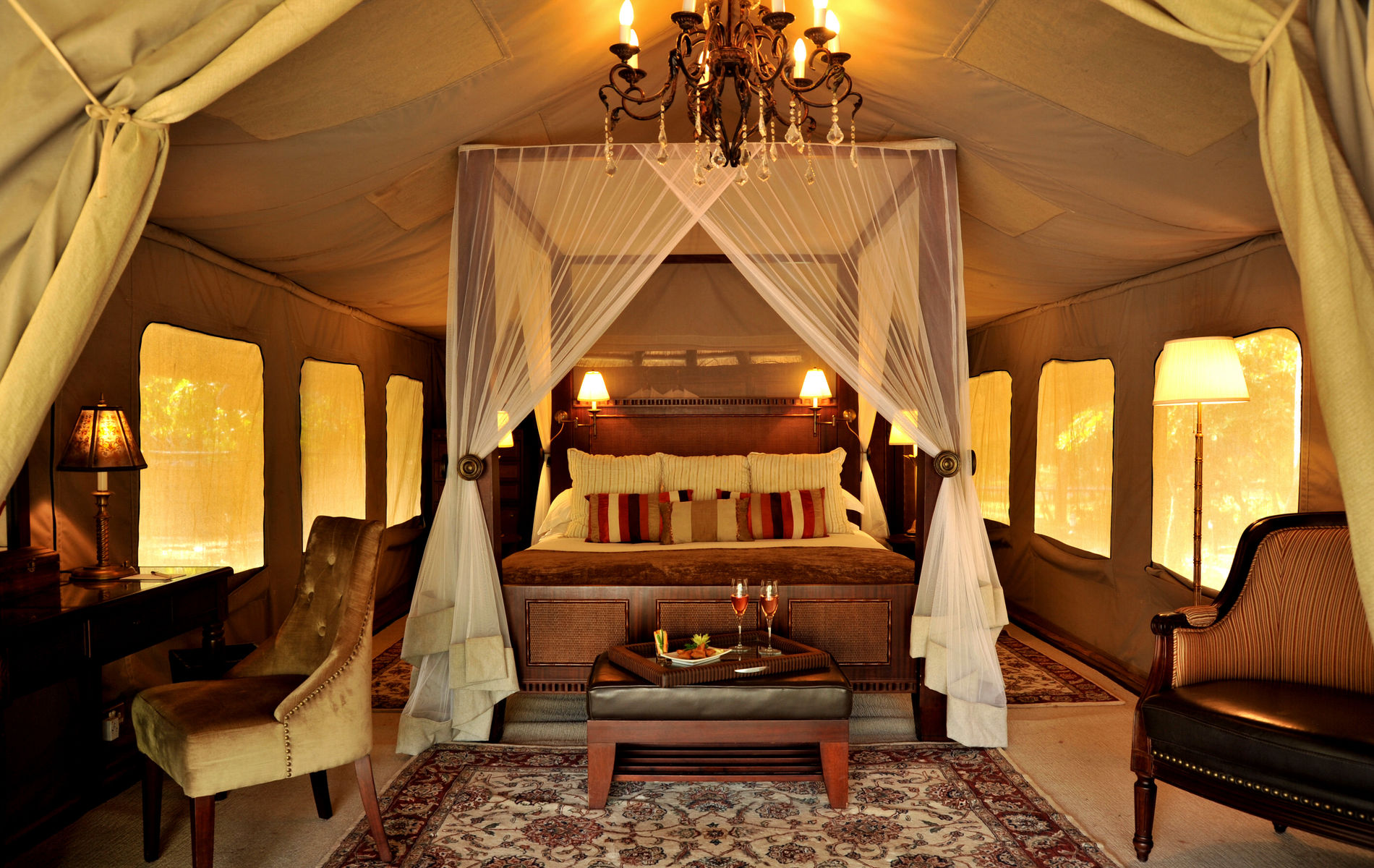 - Just twelve luxury tents with elegant ensuite bathrooms (with Victorian tub, shower, WC hot and cold running water and electricity).